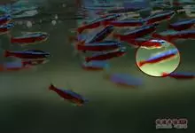 霓虹灯鱼又被称为红绿灯鱼、红莲灯鱼。鱼纲,脂鲤科。原产亚马孙河上游。体长3~4厘米,体形较细,色泽美丽,体上部的绿线,因光线角度不同,有时显出蓝色,与体下部的红线极为协调,又与腹部全红的新红绿灯鱼〔…全部>>