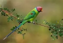 紫红头鹦鹉是鹦形目鹦鹉科的鸟类。鸟体为绿色,头部中间为红色,下颏下方延伸到脸颊下方,环绕整个颈部有一条黑色的环状羽毛,并连接一条蓝绿色的条状羽毛。…全部>>