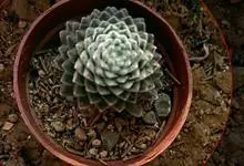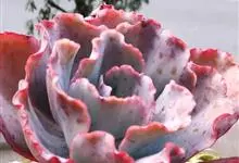女王花笠,又名扇贝石莲花、女王花舞笠,是景天科拟石莲花属的多肉植物。由美国加利福尼亚州的育种师Dick Wright于1964年培育。特征是呈大波浪状褶皱的红色叶缘和气质高贵的粉紫色调。…全部>>