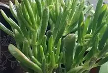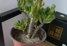 筒叶花月,是景天科青锁龙属的多年生草本植物。植株多分株,灌木状,茎较粗壮,圆柱形,表皮灰褐色;叶片肉质,互生,呈圆筒状,簇生于茎或分枝顶端,叶端呈斜截形,截面为椭圆形;花呈星状,淡白色;花期秋季。…全部>>