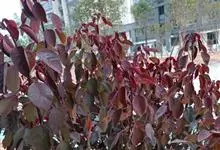 紫锦木是大戟科、大戟属的常绿乔木。叶圆卵形,主脉于两面明显,侧脉数对,边缘全缘,两面红色;花序生于二歧分枝的顶端,总苞阔钟状,裂片呈三角形,边缘具毛,腺体深绿色呈半圆形,…全部>>