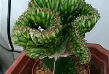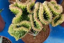 麒麟掌,是大戟科大戟属多年生植物。为金刚纂的带化变异变种。麒麟掌的株乳汁丰富;它的茎圆柱状,上部多分枝,绿色;叶互生,稀少,常生于嫩枝顶端脊上,倒卵形、倒卵状长圆形或匙形,顶端钝圆,具小凸尖,全缘,…全部>>