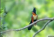 红翅凤头鹃:体长约38厘米,顶冠及凤头黑色,具显眼的直立凤头,背及尾黑色而带蓝色光泽,翅栗红色,喉及胸橙褐色,颈圈白色,腹部近白。虹膜淡红褐色。嘴黑色,下嘴基部近淡土黄色,嘴角肉红色,脚铅褐色。…全部>>