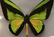 荧光裳凤蝶是凤蝶科裳凤蝶属的一种大型蝴蝶,该物种共有3个亚种。该蝶飞翔的时候姿态优美,前翅黑色,后翅金黄色和黑色交融的斑纹在阳光照射下金光灿灿,显得华贵美丽。幼虫寄主为多种马兜铃属的植物,取食马兜铃…全部>>