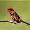 红梅花雀小型鸟类,体长9-10厘米。雄鸟通体朱红色,背、肩、胸等满布白色小斑点,两翅和尾黑褐色均具白色端斑,嘴红色,脚蜡黄色。雌鸟上体淡褐色或赭褐色,翅上中覆羽、大覆羽和内侧飞羽末端具白色斑点,…全部>>