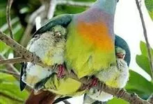 橙胸绿鸠体长24-29厘米,体重135-200克。是中等体型的绿鸠。黑色的翼上具醒目的黄色纵纹和翼缘。脸前部绿色,颈背及上背灰色。雄鸟下体黄绿,上胸淡紫,下胸橘黄;雌鸟胸部绿色。尾灰色,…全部>>