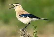 黑尾地鸦:体羽沙褐色,额、头顶以至后颈呈发金属紫蓝辉的黑色。头侧乳黄色。整个背面,包括两肩葡萄褐色。翅的中、小覆羽与背同色,最外侧的小翼羽白色;大覆羽呈发紫蓝色光辉的黑色;初级飞羽白色,…全部>>