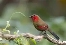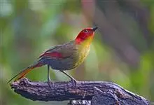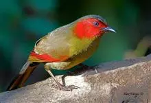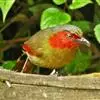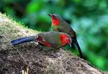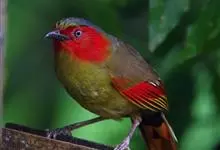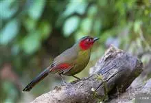红翅薮鹛是噪眉科、薮鹛属中型鸟类,体长21-24厘米。头顶灰褐色,头侧和颈侧赤红色,上体橄榄褐色,翅上具红色块斑,尾具红色或橙黄色块斑,下体灰色沾褐。虹膜褐色或红色,嘴黑色,脚暗褐色或淡灰褐色。…全部>>