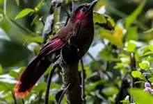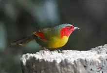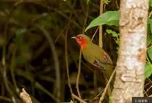 红翅薮鹛是噪眉科、薮鹛属中型鸟类,体长21-24厘米。头顶灰褐色,头侧和颈侧赤红色,上体橄榄褐色,翅上具红色块斑,尾具红色或橙黄色块斑,下体灰色沾褐。虹膜褐色或红色,嘴黑色,脚暗褐色或淡灰褐色。…全部>>