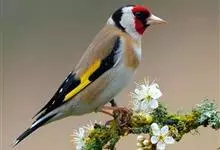 红额金翅雀:共有14个亚种。小型鸟类,体长12-14厘米。额、脸颊和颏朱红色,眼先和眼周黑色,在淡色的头部极为醒目。上体灰褐或乌褐色,尾上覆羽白色,两翅和尾黑色,翅上有黄色斑。下体喉、胸灰褐或乌褐色…全部>>