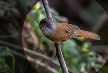 栗额斑翅鹛是噪眉科、斑翅鹛属中型鸟类,体长20-23厘米。头顶具浓密的羽冠,前额栗棕色,头顶灰褐色。上体棕褐色,两翅棕褐色具黑色横斑,翅基外缘有一黑斑,尾呈凸状,棕褐色具黑色横斑。下体棕褐色,…全部>>