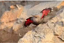 红翅旋壁雀:体重15-23克,体长120-178毫米。是一种体型略小的鸟类。尾短而嘴长,翼具醒目的绯红色斑纹。飞羽黑色,外侧尾羽羽端白色显著,初级飞羽两排白色点斑飞行时成带状。繁殖期雄鸟脸及喉黑色,…全部>>