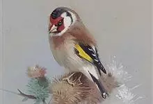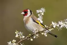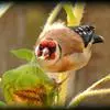 红额金翅雀:共有14个亚种。小型鸟类,体长12-14厘米。额、脸颊和颏朱红色,眼先和眼周黑色,在淡色的头部极为醒目。上体灰褐或乌褐色,尾上覆羽白色,两翅和尾黑色,翅上有黄色斑。下体喉、胸灰褐或乌褐色…全部>>