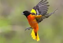 金黄鹂是中型鸣禽。体长24厘米。头全黄色。体羽鲜丽,主要由为黄和黑的颜色组合,雌鸟与幼鸟多具条纹。雄性成鸟眼先、翼及尾基部黑色,其余为鲜亮黄色。雌鸟较暗淡而多绿色。幼鸟偏绿色,下体具细密纵纹。虹膜红…全部>>