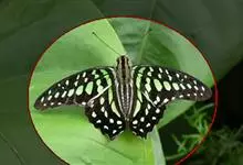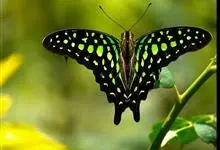 青带凤蝶Graphium sarpedon ,又名青凤蝶,是最普遍的中型凤蝶,飞行速度很快。青带凤蝶的翅膀中央有许多浅蓝色的斑点,很整齐地排列成一条直线。这些斑点由上而下逐渐变大,就像一条青色的带子。全部>>