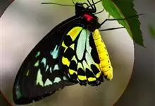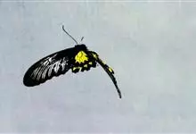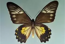 金裳凤蝶是凤蝶科、裳凤蝶属的动物。金裳凤蝶身体呈黑色,头、颈和胸侧有红毛,腹部有黑黄两色相间条纹,雄蝶前翅黑色,具黑天鹅绒光泽,各脉两侧灰白色,后翅金黄色,各室外缘有等腰三角形黑斑1枚,斑内侧有晕,…全部>>