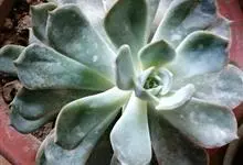 蓝石莲是景天科、拟石莲花属的多肉植物。茎部粗壮,成熟植株茎部木质化。叶片莲座型密集排列,株径不会很大,叶片相对较薄,常年绿色,表面布有白色粉末,中部凹陷,呈倒水滴状。叶尖较尖,叶缘光滑无褶皱,…全部>>