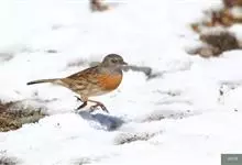 鸲岩鹨是岩鹨科、岩鹨属小型鸟类,体长15-17厘米。头灰棕色,背、肩、腰棕褐色具黑色纵纹,两翅褐色,翅上有白色翅斑。颏、喉沙褐或灰色,胸锈棕色,在喉胸之间有一不明显的黑色颈圈,其余下体白色。特征明显,…全部>>