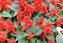 一串红,又称爆仗红、象牙红,为唇形科鼠尾草属植物。花序修长,色红鲜艳,花期又长,适应性强,为中国城市和园林中最普遍栽培的草本花卉。原产巴西、南美洲。喜温暖和阳光充足环境。不耐寒,耐半阴,忌霜雪和高温,…全部>>