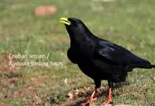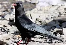 红嘴山鸦,是脊索动物门鸟纲雀形目鸦科鸟类。红嘴山鸦的成鸟通体羽毛纯黑色具有蓝色金属光泽,翼和尾泛有蓝绿色金属光泽;虹膜暗褐色,喙较为尖细,并且呈镰状下弯,喙和脚朱红色。…全部>>