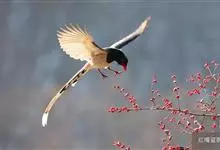 红嘴蓝鹊,别名山鹊、长尾鹊,是鸦科蓝鹊属的一种观赏性较强的大型鸣禽。该物种为体长54~65cm,头、颈、喉和胸黑色,头顶至后颈有一块白色至淡蓝白色或紫灰色块斑,其余上体紫蓝灰色或淡蓝灰褐色。尾长呈凸状,…全部>>