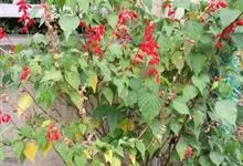 一串红,又称爆仗红、象牙红,为唇形科鼠尾草属植物。花序修长,色红鲜艳,花期又长,适应性强,为中国城市和园林中最普遍栽培的草本花卉。原产巴西、南美洲。喜温暖和阳光充足环境。不耐寒,耐半阴,忌霜雪和高温,…全部>>