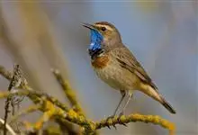 蓝点颏亦称“蓝喉歌鸲”,通称蓝靛颏儿。身体大小和麻雀相似,体长12-13厘米,体重17-18克。头部、上体主要为土褐色。眉纹白色。尾羽黑褐色,基部栗红色。颏部、喉部辉蓝色,下面有黑色横纹。下体白色。…全部>>
