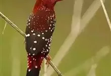 红梅花雀小型鸟类,体长9-10厘米。雄鸟通体朱红色,背、肩、胸等满布白色小斑点,两翅和尾黑褐色均具白色端斑,嘴红色,脚蜡黄色。雌鸟上体淡褐色或赭褐色,翅上中覆羽、大覆羽和内侧飞羽末端具白色斑点,…全部>>