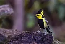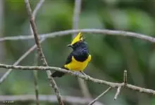 冕雀:共有4个亚种。体长20-21厘米,体重34-49克。具蓬松的黄色长型冠羽。雌鸟似雄鸟,但喉及胸深橄榄黄色,上体沾橄榄色。不会被误认的体大的黄色及黑色山雀。混群栖于原始林及次生林的林冠层,…全部>>