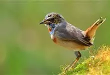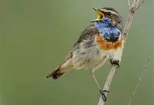 蓝点颏亦称“蓝喉歌鸲”,通称蓝靛颏儿。身体大小和麻雀相似,体长12-13厘米,体重17-18克。头部、上体主要为土褐色。眉纹白色。尾羽黑褐色,基部栗红色。颏部、喉部辉蓝色,下面有黑色横纹。下体白色。…全部>>