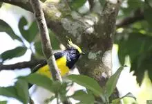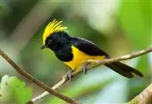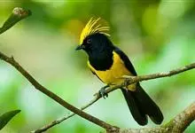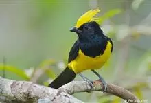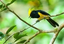 冕雀:共有4个亚种。体长20-21厘米,体重34-49克。具蓬松的黄色长型冠羽。雌鸟似雄鸟,但喉及胸深橄榄黄色,上体沾橄榄色。不会被误认的体大的黄色及黑色山雀。混群栖于原始林及次生林的林冠层,…全部>>