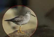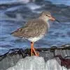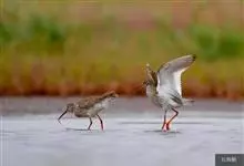 红脚鹬:体长28厘米,上体褐灰,下体白色,胸具褐色纵纹。飞行时腰部白色明显,次级飞羽具明显白色外缘。尾上具黑白色细斑。虹膜黑褐色,嘴长直而尖,基部橙红色,尖端黑褐色。脚较细长,亮橙红色,…全部>>