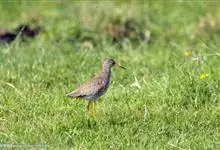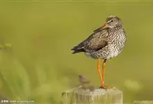 红脚鹬:体长28厘米,上体褐灰,下体白色,胸具褐色纵纹。飞行时腰部白色明显,次级飞羽具明显白色外缘。尾上具黑白色细斑。虹膜黑褐色,嘴长直而尖,基部橙红色,尖端黑褐色。脚较细长,亮橙红色,…全部>>