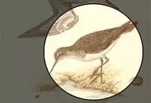 泽鹬:小型涉禽,体长19-26厘米。嘴长,相当纤细,直而尖。颜色为黑色,基部绿灰色,脚细长,暗灰绿色或黄绿色。夏季上体灰褐色具黑色斑,腰白色并向下呈楔形延伸。下体白色,颈、胸具细的黑色纵纹。…全部>>