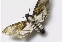 鬼脸天蛾,是鳞翅目天蛾科面形天蛾属动物。成虫翅展100~125毫米,体黑褐色;胸背有骷髅形斑纹;卵圆球形,直径约2毫米,淡黄绿色,表面光滑;老熟幼虫体长70~90毫米,蛹体长约56毫米;前翅为褐色,…全部>>