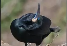 黑颈鸬鹚,中型水鸟,体长50~51厘米。繁殖期通体黑色,缀有深蓝色和蓝绿色光泽;肩、内侧次级飞羽及翅覆羽暗银灰色,羽缘黑色;头顶、头的两边和颈缀有少许白色丝状羽;枕部和后颈有轻微的短的羽冠。主要以鱼…全部>>