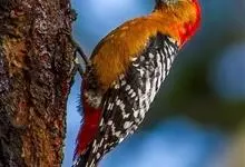棕腹啄木鸟为啄木鸟科,啄木鸟属是中等体型的鸟类,体长约20厘米。头顶部具红色斑带。脚强健,有趾4个,其中2个向前,2个向后,各趾的趾端均具有锐利的爪,巧于攀登树木。尾羽的羽干刚硬如棘,…全部>>