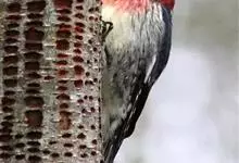 红腹啄木鸟成年雄鸟头项有红帽,翅膀和上体是黑白相间的斑纹状羽毛,腹部有一片红羽毛。头亦大,但颈较长,嘴强硬而直,呈凿形,鼻孔裸露;尾羽羽干大都硬挺且尖,尾羽12片,初级飞羽9片。头骨为蜥腭型,…全部>>