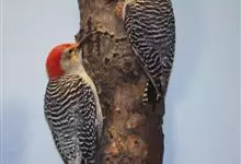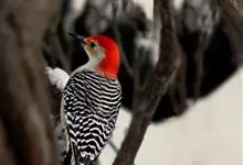 红腹啄木鸟成年雄鸟头项有红帽,翅膀和上体是黑白相间的斑纹状羽毛,腹部有一片红羽毛。头亦大,但颈较长,嘴强硬而直,呈凿形,鼻孔裸露;尾羽羽干大都硬挺且尖,尾羽12片,初级飞羽9片。头骨为蜥腭型,…全部>>