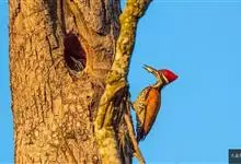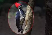 白腹黑啄木鸟,是啄木鸟科、黑啄木鸟属的中型鸟类,体长43-46厘米,头顶具长的红色羽冠,颚纹亦为红色,其余头、颈、胸和上体黑色,腰和腹白色,飞翔时白色腋羽和翅下覆羽亦明显可见。雌鸟头顶黑色,…全部>>