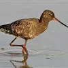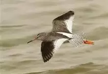 红脚鹬:体长28厘米,上体褐灰,下体白色,胸具褐色纵纹。飞行时腰部白色明显,次级飞羽具明显白色外缘。尾上具黑白色细斑。虹膜黑褐色,嘴长直而尖,基部橙红色,尖端黑褐色。脚较细长,亮橙红色,…全部>>
