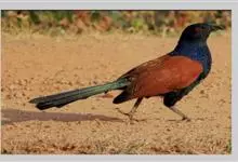 褐翅鸦鹃,是鹃形目鸦鹃科鸦鹃属的鸟类。褐翅鸦鹃的身体为黑色;头颈和胸带蓝紫色金属光泽并具黑亮的羽干纹,下胸至腹部泛金属绿光泽;两翼和肩部为棕栗色,外侧飞羽具暗色羽端,尾羽闪铜绿色光泽;虹膜赤红色,…全部>>