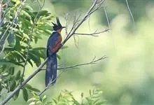 红翅凤头鹃:体长约38厘米,顶冠及凤头黑色,具显眼的直立凤头,背及尾黑色而带蓝色光泽,翅栗红色,喉及胸橙褐色,颈圈白色,腹部近白。虹膜淡红褐色。嘴黑色,下嘴基部近淡土黄色,嘴角肉红色,脚铅褐色。…全部>>