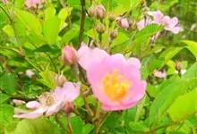 美蔷薇:是蔷薇科,蔷薇属的一种直立灌木,高1-3米;小枝有细而较直立的皮刺。羽状复叶;小叶7-9,长椭圆形或卵形,边缘有锐锯齿;叶柄和叶轴有柔毛和腺毛,有时有小皮刺;托叶宽。花粉红色,直径4-5厘米,…全部>>
