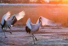 丹顶鹤:是鹤科、鹤属的一种大型涉禽,体长120-160厘米。颈、脚较长,通体大多白色,头顶鲜红色,喉和颈黑色,耳至头枕白色,脚黑色,站立时颈、尾部飞羽和脚黑色,头顶红色,…全部>>