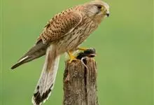 红隼:是隼科、隼属的小型猛禽之一。体重173-335克,体长305-360毫米。翅狭长而尖,尾亦较长,外形和共同爪隼非常相似。雄鸟头蓝灰色,背和翅上覆羽砖红色,具三角形黑斑;腰、尾上覆羽和尾羽蓝灰色,…全部>>