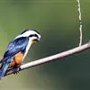 红腿小隼是隼形目隼科小隼属鸟类。红腿小隼前额白色,眼上有一宽阔的白色眉纹,往后经耳覆羽与上背白色领圈相连颊和耳覆羽白色,从眼前开始有一粗的黑色贯眼纹经眼斜向下到耳;其余上体包括翅和尾黑色,…全部>>