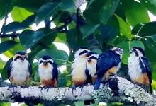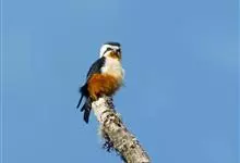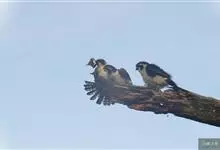 红腿小隼是隼形目隼科小隼属鸟类。红腿小隼前额白色,眼上有一宽阔的白色眉纹,往后经耳覆羽与上背白色领圈相连颊和耳覆羽白色,从眼前开始有一粗的黑色贯眼纹经眼斜向下到耳;其余上体包括翅和尾黑色,…全部>>