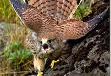 红隼:是隼科、隼属的小型猛禽之一。体重173-335克,体长305-360毫米。翅狭长而尖,尾亦较长,外形和共同爪隼非常相似。雄鸟头蓝灰色,背和翅上覆羽砖红色,具三角形黑斑;腰、尾上覆羽和尾羽蓝灰色,…全部>>