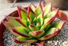 红艳辉又名红辉炎,景天科拟石莲花属的多肉植物。是锦晃星的杂交品种。株型呈莲座状,秋天会变红,很美丽的品种。栽培较为普遍,其肥厚、多肉的叶片布满了细短的白色绒毛,叶缘顶端的红色鲜艳夺目。 全部>>